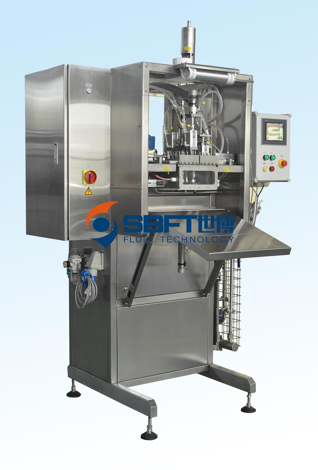 按下啟動鍵,自動完成拔蓋、袋口殺菌、定量灌裝、壓蓋等功能,整個灌裝動作在無菌環境下完成。